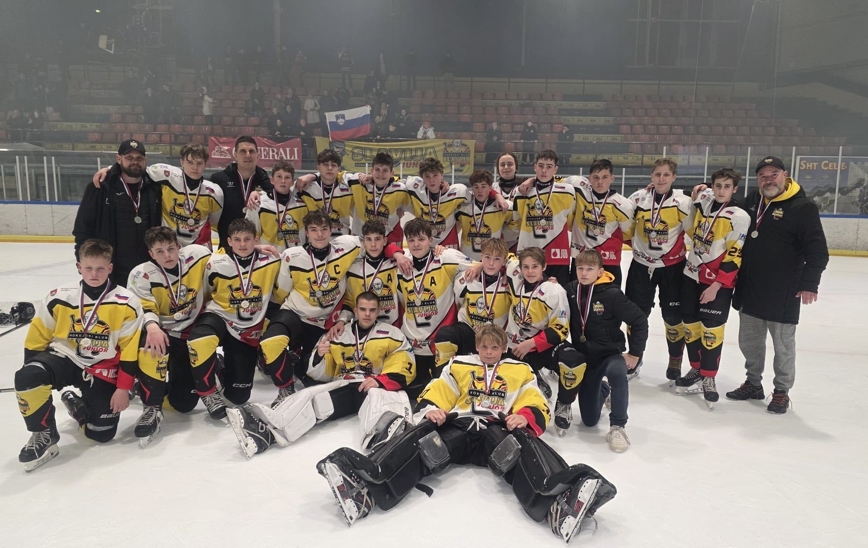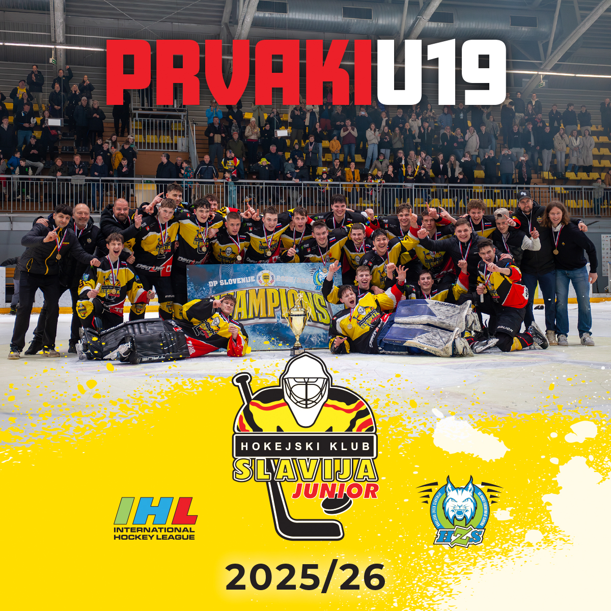 Zaloška dvorana je bila priča izjemnemu dosežku! Ekipa U19 Slavije Junior je pred polno domačo tribuno kronala sezono iz sanj in se zasluženo veselila naslova državnih prvakov Slovenije ter naslova prvakov lige IHL.Read More